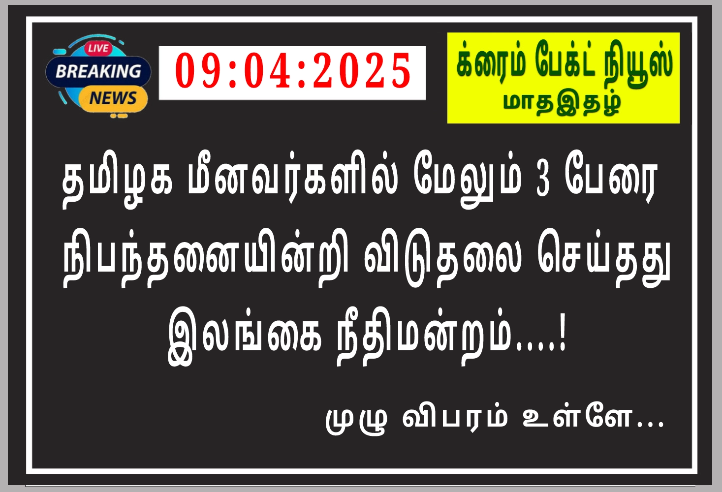 தமிழக மீனவர்களில் மேலும் 3 பேரை நிபந்தனையின்றி விடுதலை செய்தது இலங்கை நீதிமன்றம்….!